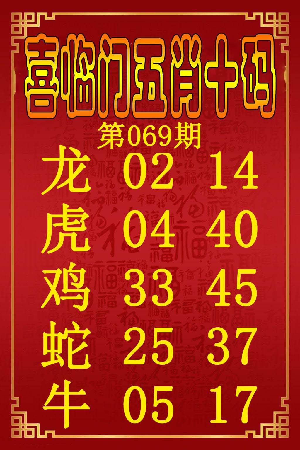 | 069期推荐③肖:马蛇虎 |
