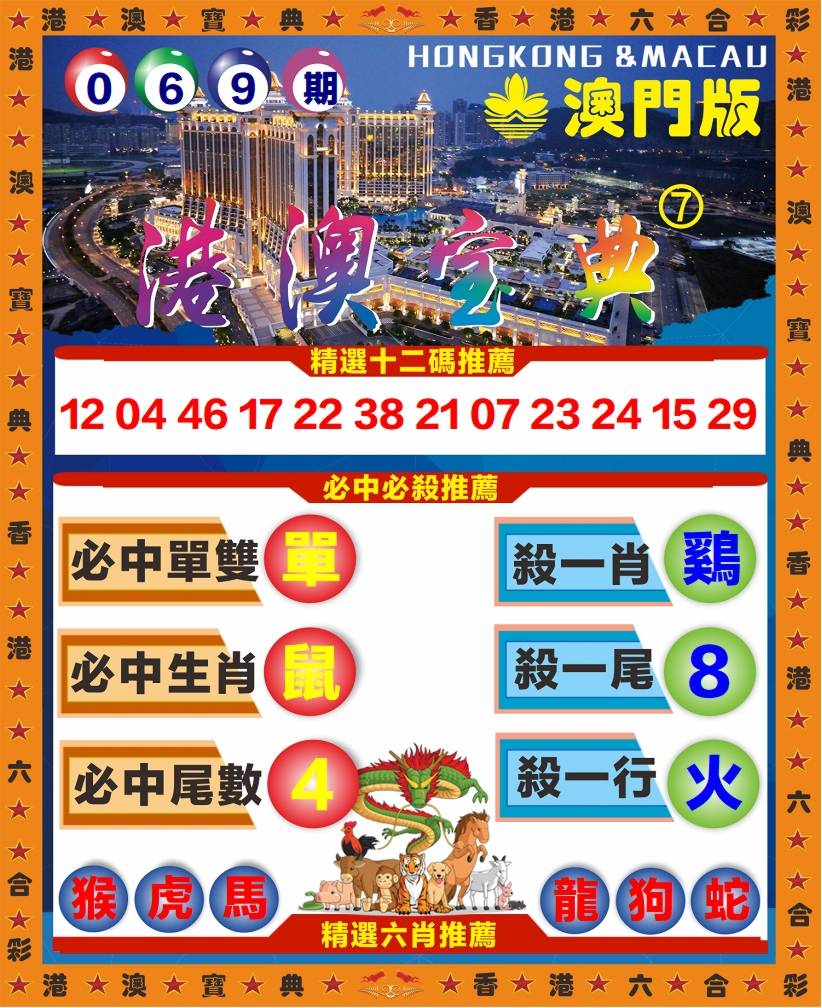 069期⑦肖【兔龙鸡鼠猴猪蛇】
